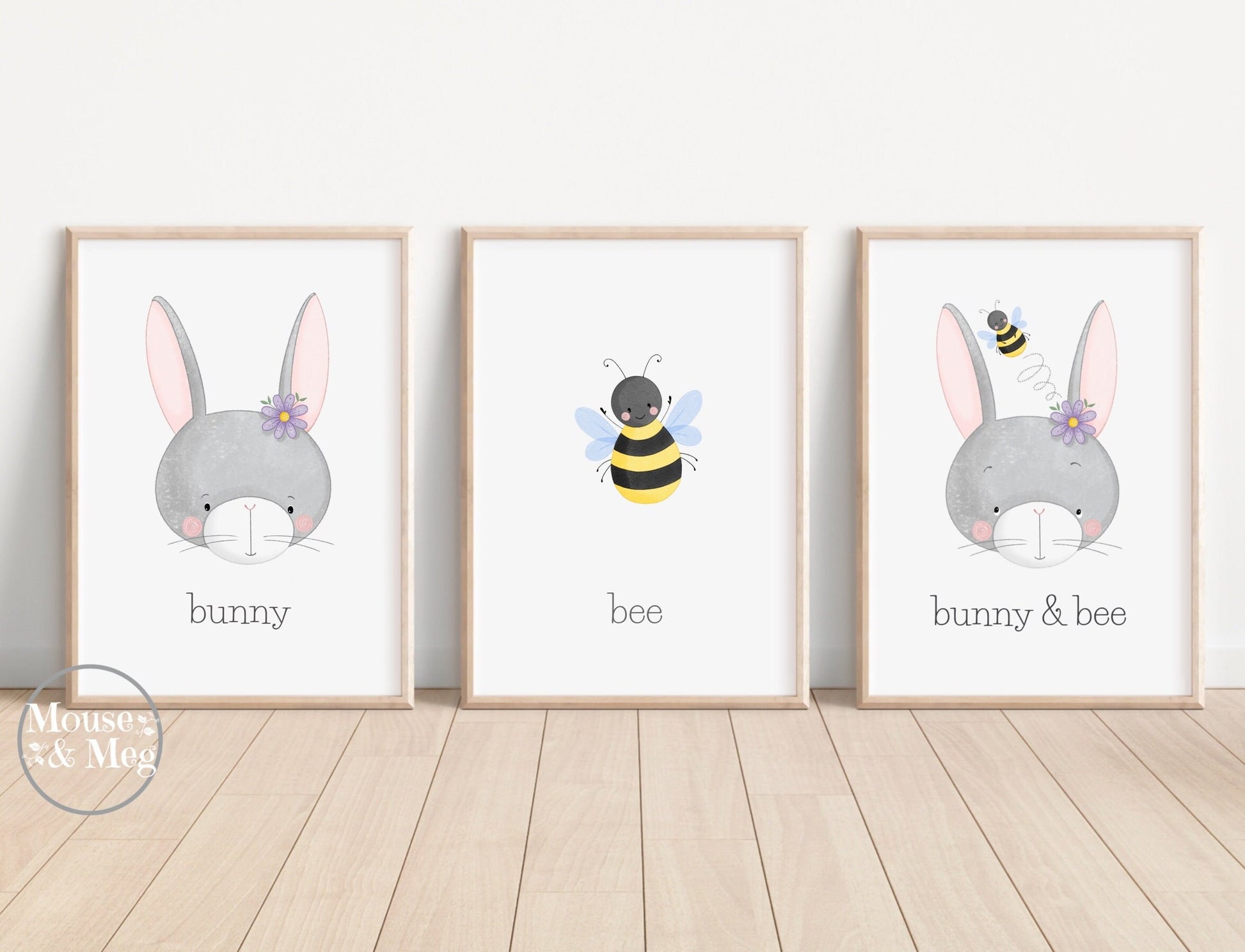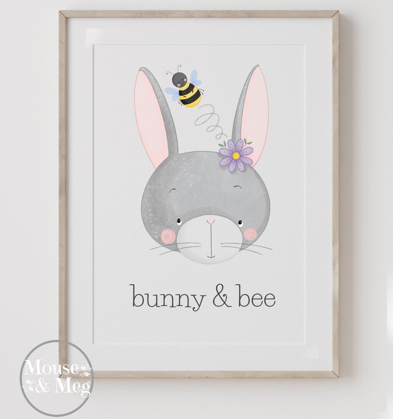 Bunny, Bee, Wall Art, Nursery Print, Children's Prints, Kids Bedroom, Nursery, Boho, Cute, Scandi