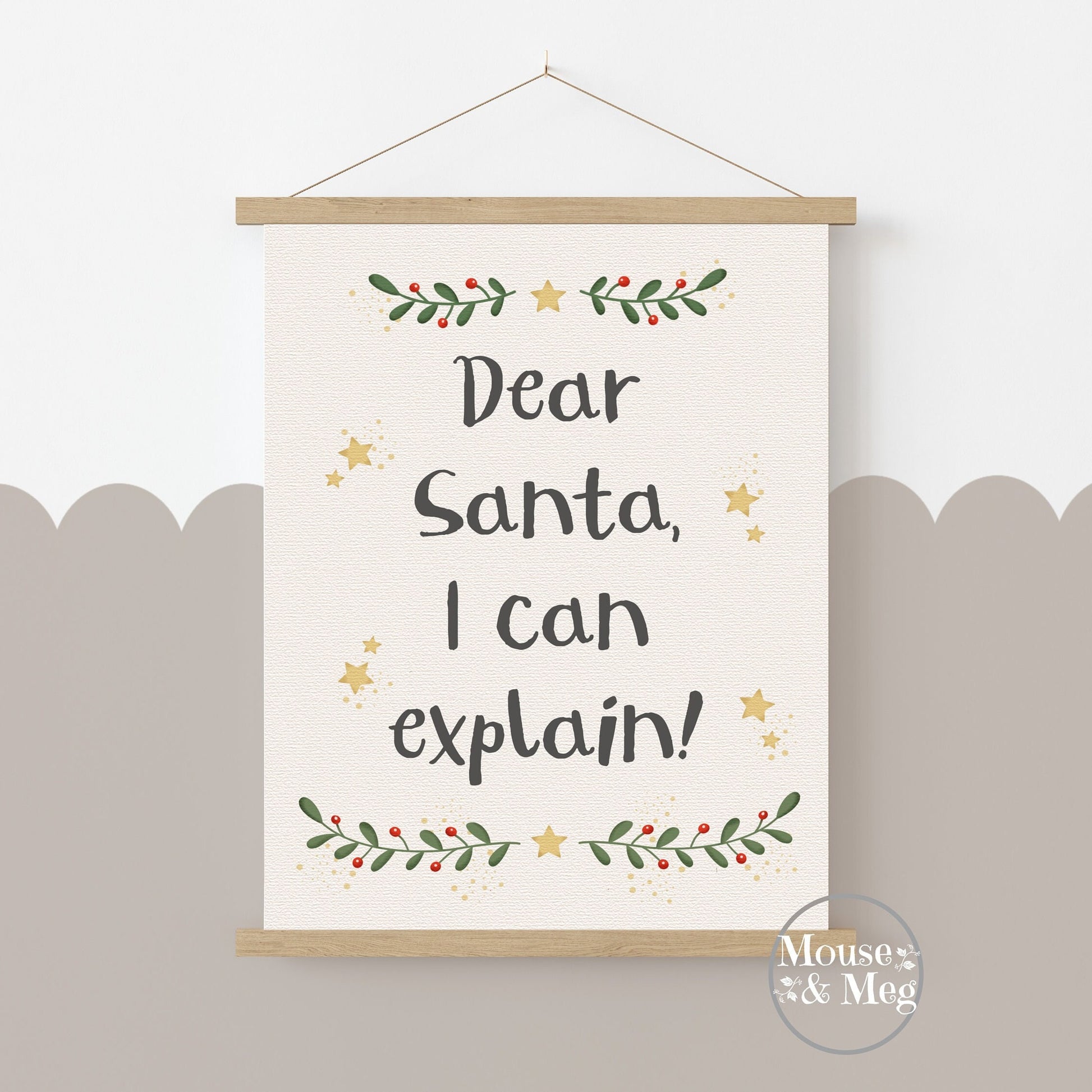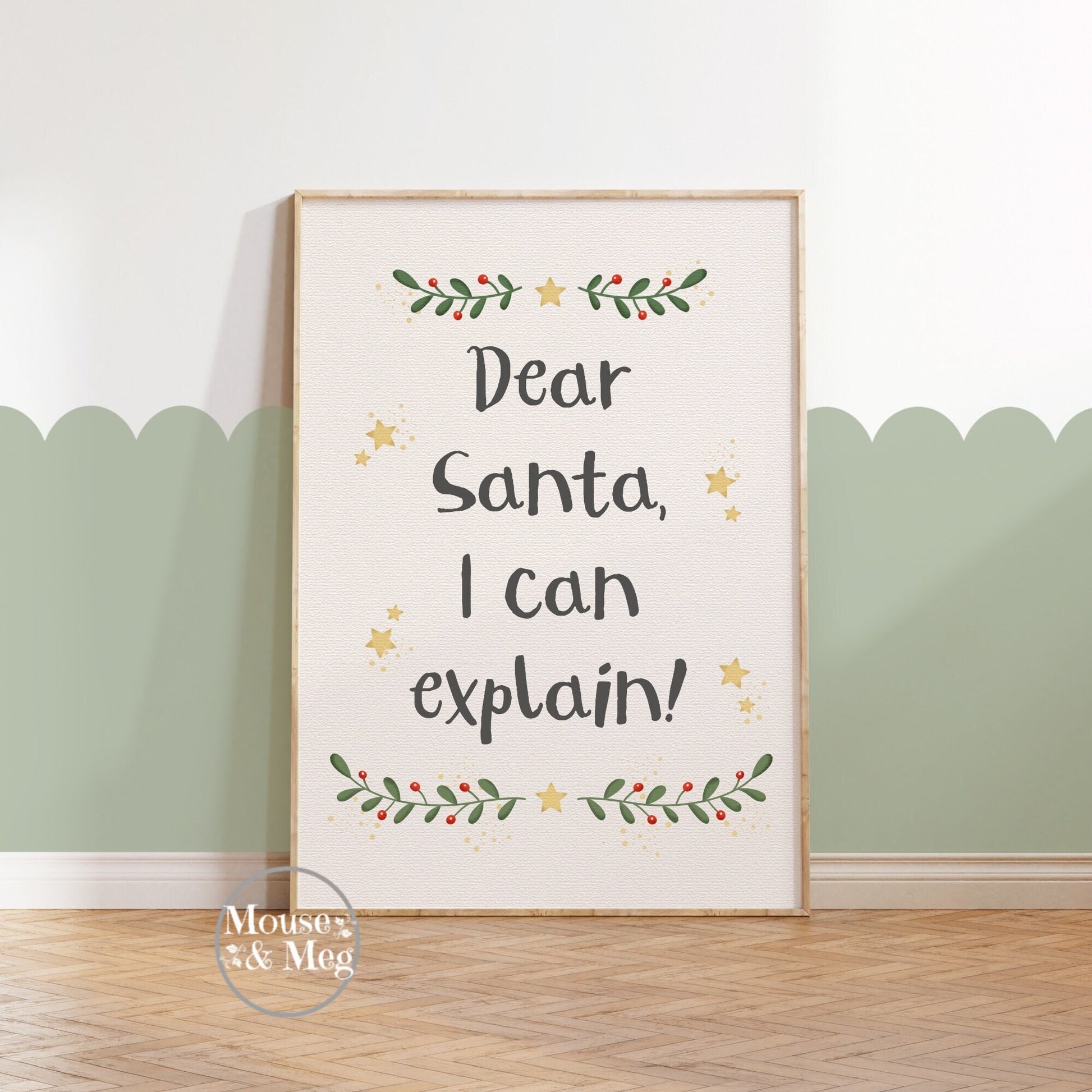 Original artwork by Laura Lawes of Mouse & Meg. Artwork featuring cheeky message to Santa quote and Scandinavian style borders, perfect to make a cheeky, seasonal addition to a child's bedroom or playroom.